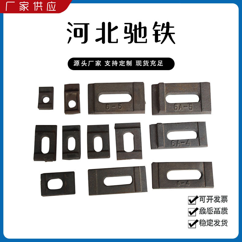 主要產(chǎn)品:鐵路配件、行車配件、工礦配件、魚尾板、道釘、壓軌器、軌道壓板、軌距拉桿、護(hù)軌扣板、T型螺栓、魚尾螺栓、彈條、軌距擋板